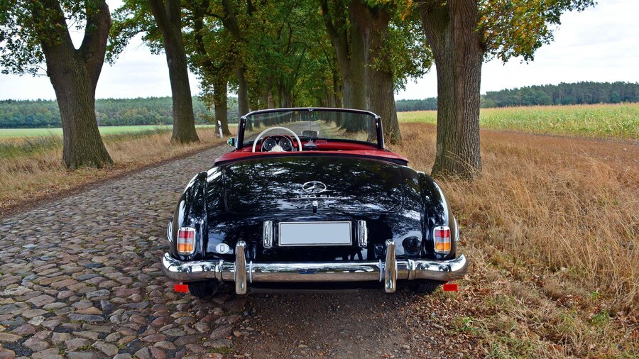 The Mercedes-Benz 190 SL (W121) is a two-door luxury roadster produced by Mercedes-Benz between May 1955 and February 1963. Internally referred to as W121 (BII or B2), it was first shown in prototype at the 1954 New York Auto Show, and was available with an optional removable hardtop. This is the black version.